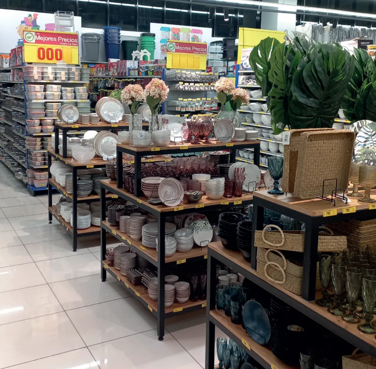 Diseñamos islas, mesas y exhibidores para panadería, frutas y vegetales, hogar y ropa. Cada área está pensada para mejorar la circulación, resaltar productos clave y ofrecer una experiencia de compra agradable y ordenada.