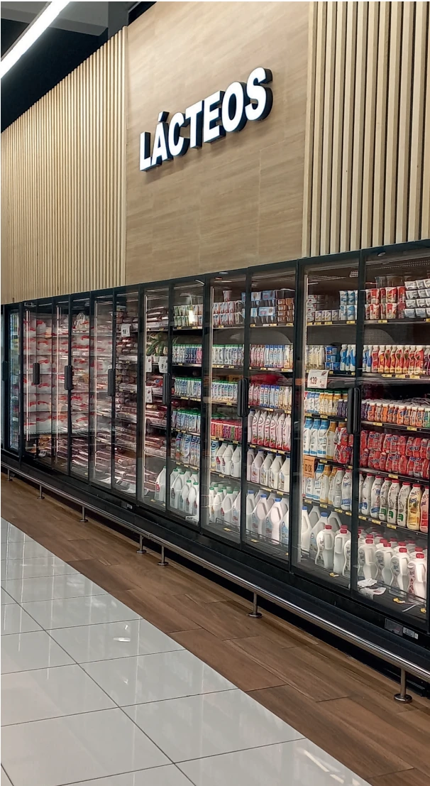 Implementamos equipos de refrigeración de última generación (líneas Galaxy, Bevo, Skyshine, Skyview, entre otras) fabricados en Europa. Garantizan temperatura estable, ahorro energético y una presentación impecable en cada categoría de producto.